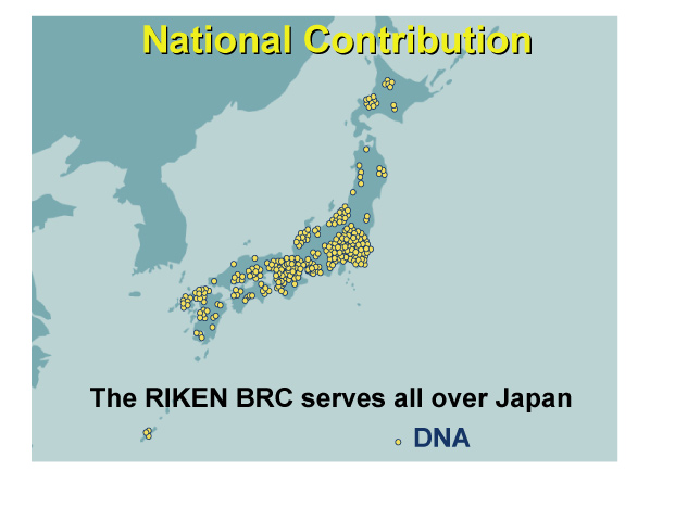 Since the establishment of the DNA bank, we have been pursuing activities based on collecting hosts, vectors, and gene clones. The DNA bank is public domain and is supported by the research community. Instead of specialized clones developed by large-scale projects, we focus on collecting and distributing clones developed by individual researchers which have been utilized in actual researches and have produced results.