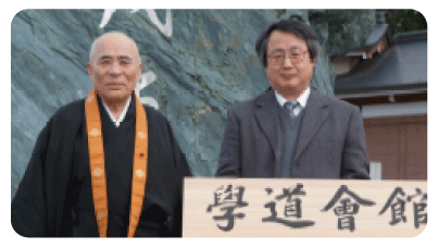 Ryusho Kobayashi, a retired executive of Enryakuji at Mt. Hiei, was asked to write the name on the name plate. He graciously accepted our request. His powerful spirit belies
