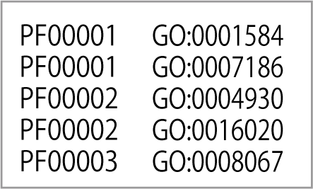 The correlation table of the Pfam and GeneOntologyID accession numbers shown on the left is