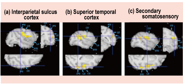 Iriki, et al. recently reported a unique research result in RIKEN. They observed that the visual receptive field of the neural cells in a certain area of the parietal association cortex is enlarged from fingers to the tip of tools in Nihonzaru that learned the use of tools. In other words, a tool is assimilated into the monkey’s body schema. The recent study also reported an increase in the volume of gray matter in the cerebral cortex during this process (Fig. 2).