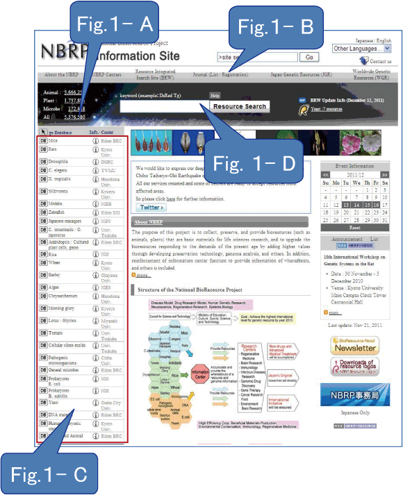 All the databases have been well-developed. I would like to introduce each database in a separate issue of the newsletter next year, since the space is too limited for introduction of all the databases at once. Therefore, in this issue, I will give an overview of the project and the resource integrated search site, Bio Resource World (BRW), which has been provided by the information center.