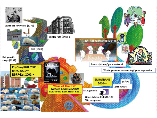 The 18th International Workshop on Genetic Systems in the Rat was held at Kyoto University from November 30 to December 3, 2010. This workshop is an international conference for rat research communities. The conference has been held in even-numbered years since 1977 and has a rich history. The workshop conducted this year was the second such workshop in Kyoto and the third in Japan, following those held in Sapporo in 1994 and Kyoto in 2002. Since inbred rat strains have been used in implant research, in the earliest years, the workshop emphasized on histocompatibility genes, and it was formerly called the International Workshop on Alloantigenic Systems in the Rat. The importance of using genetically controlled rat strains is not limited to implant research, and therefore, in 2000, the workshop was renamed to its current name. The workshop has been closely associated with the National BioResource Project for the Rat (NBRP-Rat), and the 14th workshop (in Kyoto in 2002) was organized around the same time with the initiation of the first term of NBRP-Rat.