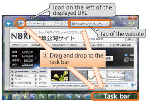 In this example, I bookmarked the links ("About the NBRP," "NBRP Centers," "Resource Integrated Search Site (BRW)," etc.) on the upper menu bar of the public information website of the National BioResource Project (http://www.nbrp.jp). If "About NBRP" is to be displayed, for example, the following meta tag should be added between <head> and </head> in the HTML code.
