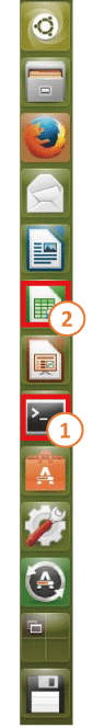 The tools introduced in this article are all executed via the command line inside a terminal window. The terminal window can be opened by clicking on the icon on the top left-hand corner, in the application bar (Fig 1-①).