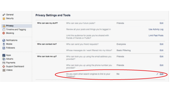 Fig. 1. Privacy setting to hide your links from search engines.