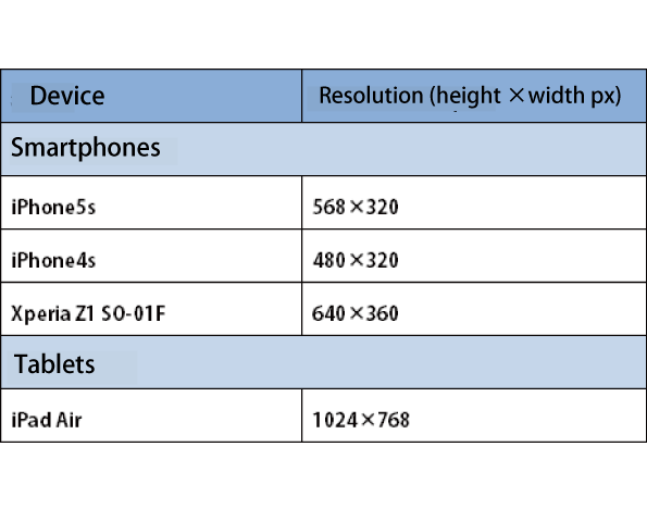 As the market for mobile devices such as smartphones and tablets rapidly expands, an increasing number of websites are being developed for these devices. However, mobile devices have varying screen resolutions, and the perceived resolution (CSS pixels) also varies widely. Furthermore, the height and width of the browser are inverted when a mobile device is rotated sideways (Table 1)