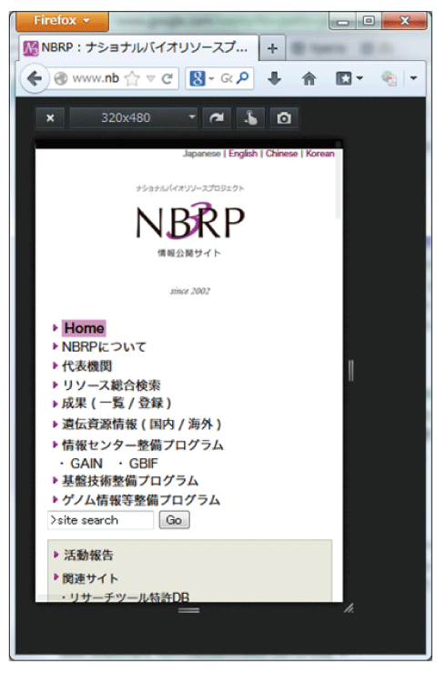 Fig. 2. Example of mobile website emulation utilizing Firefox 26