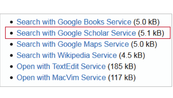 Fig. 5. The "Search with Google Scholar" submenu in the Services menu
