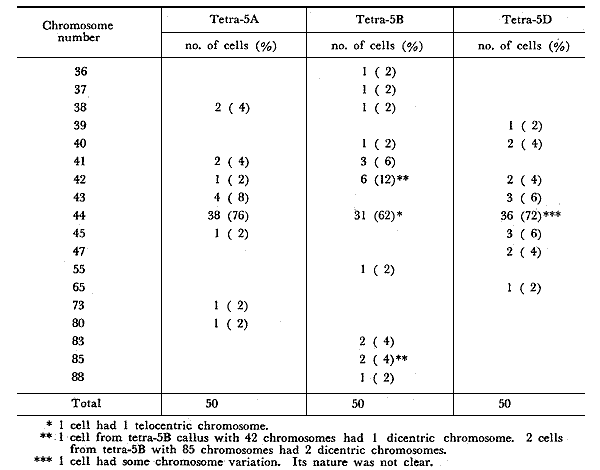 Chromosome constitution of callus tissues from tetra-5A,-5B