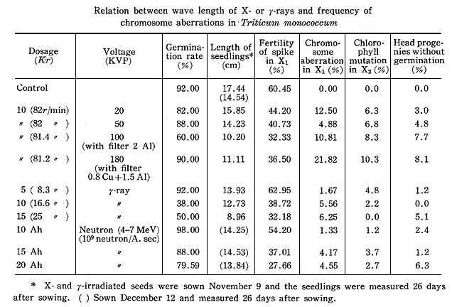 dosage of gamma-rays or neutrons, the lower was the germination rate of