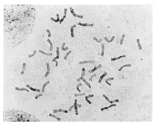 Mitotic metaphase cell of MT-4-1-1 after Leishman-C-bandeng (2n=42).(Magn.1550x)