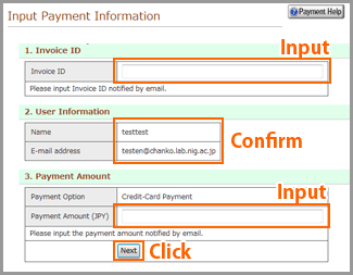 - 2.3 Input the Payment Amount written by the payment information mail.