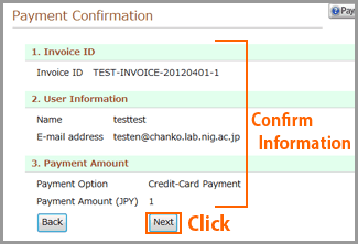 - Please click "Back" button when you want to correct the Payment Amount.