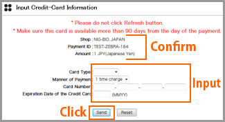 Return to "Input Credit-Card information" page, and try to input again.