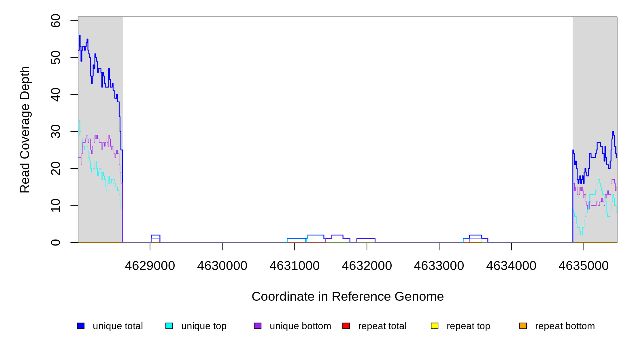| seq id | start | end | size | ←reads | reads→ | gene | description | |||