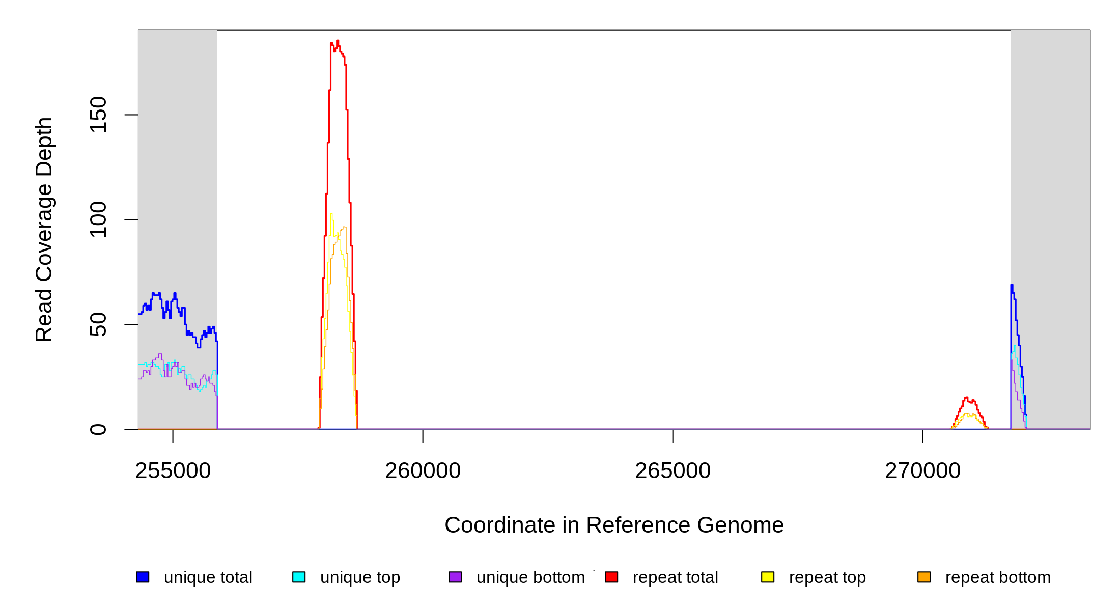 | seq id | start | end | size | ←reads | reads→ | gene | description | |||
