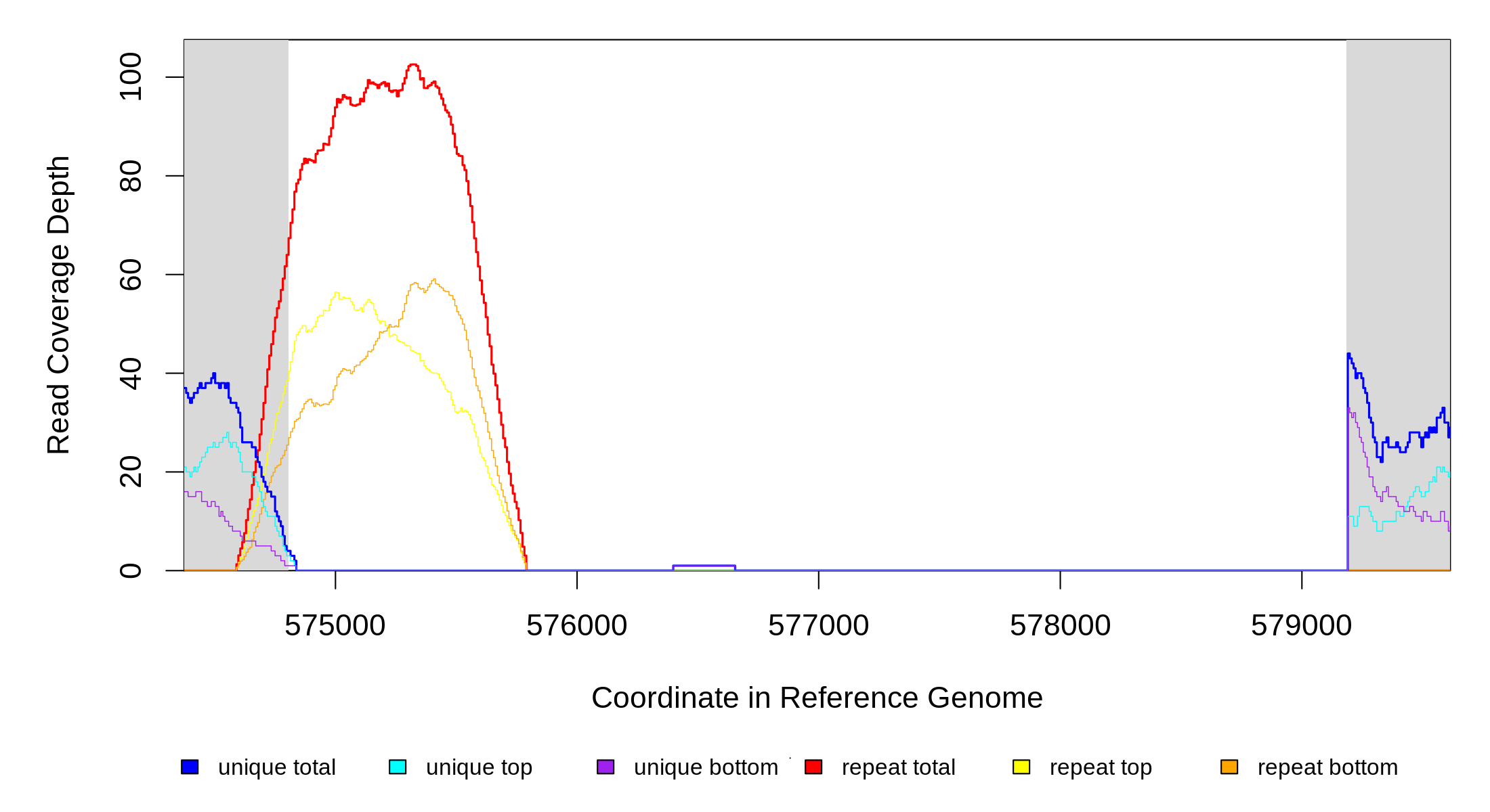 | seq id | start | end | size | ←reads | reads→ | gene | description | |||