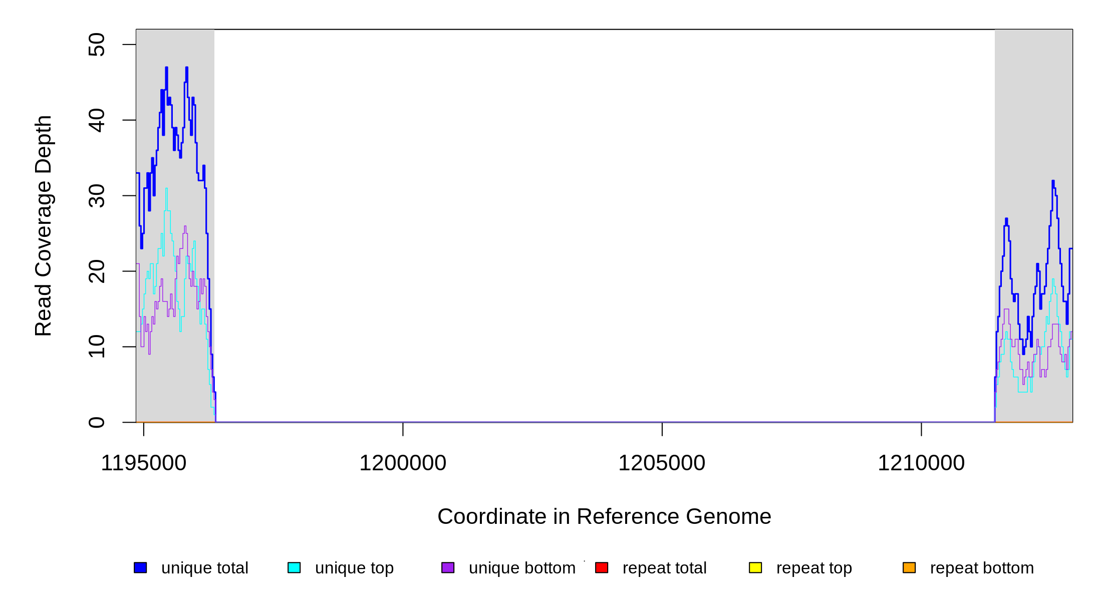 | seq id | start | end | size | ←reads | reads→ | gene | description | |||