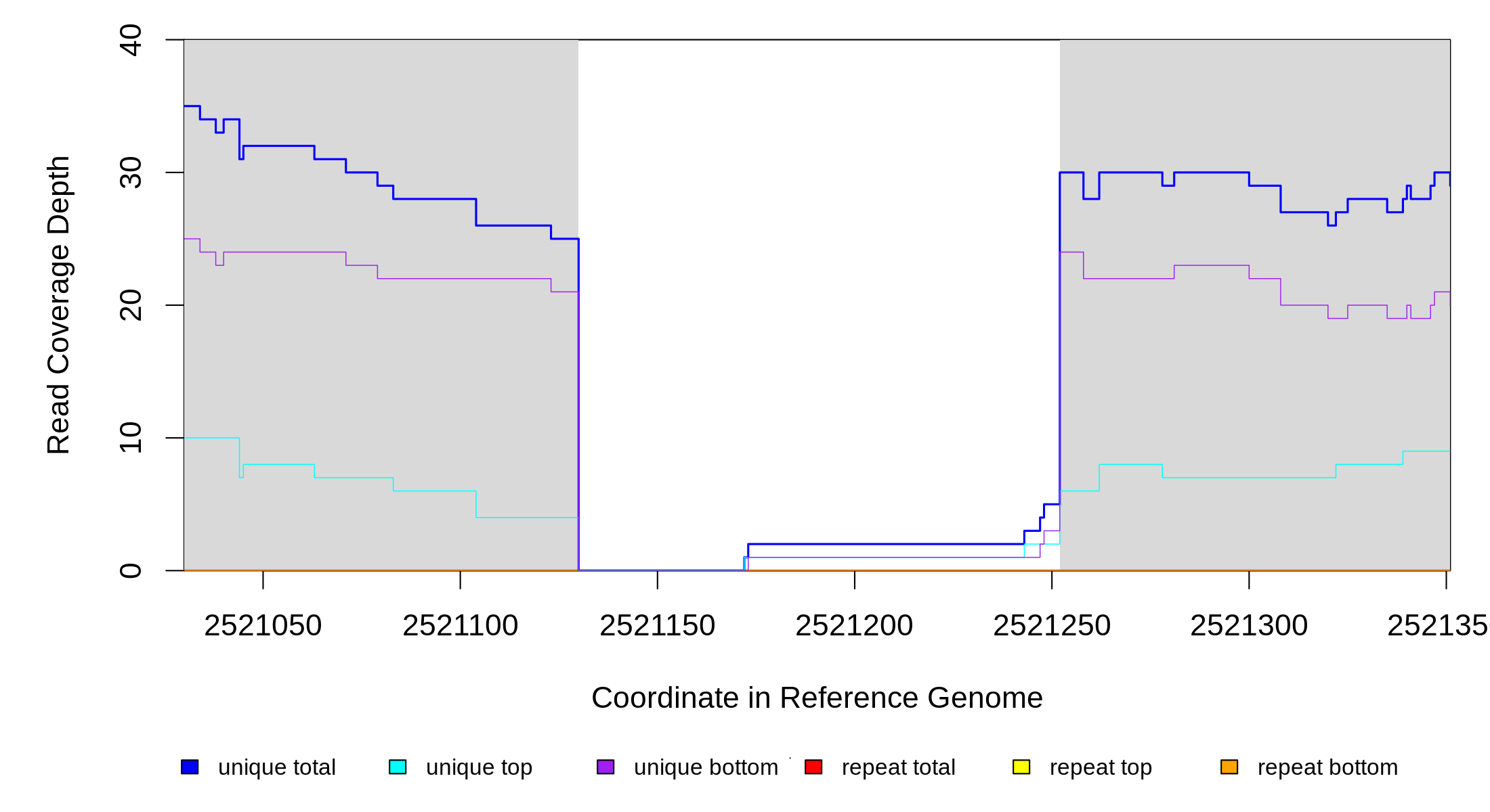 | seq id | start | end | size | ←reads | reads→ | gene | description | |||