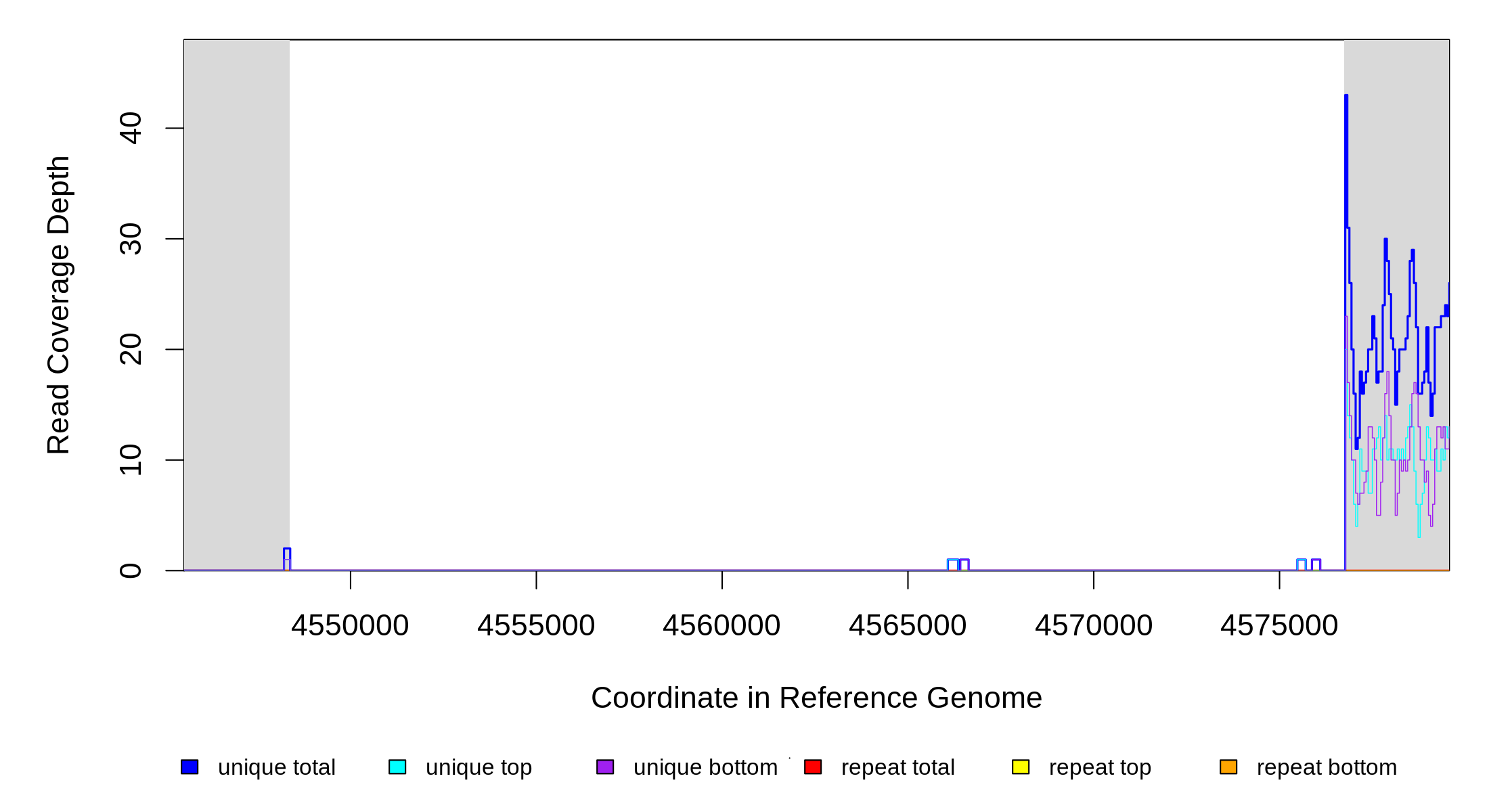 | seq id | start | end | size | ←reads | reads→ | gene | description | |||