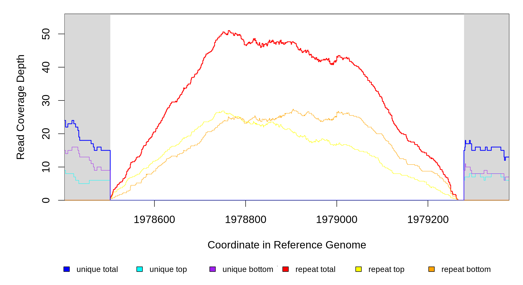 | seq id | start | end | size | ←reads | reads→ | gene | description | |||