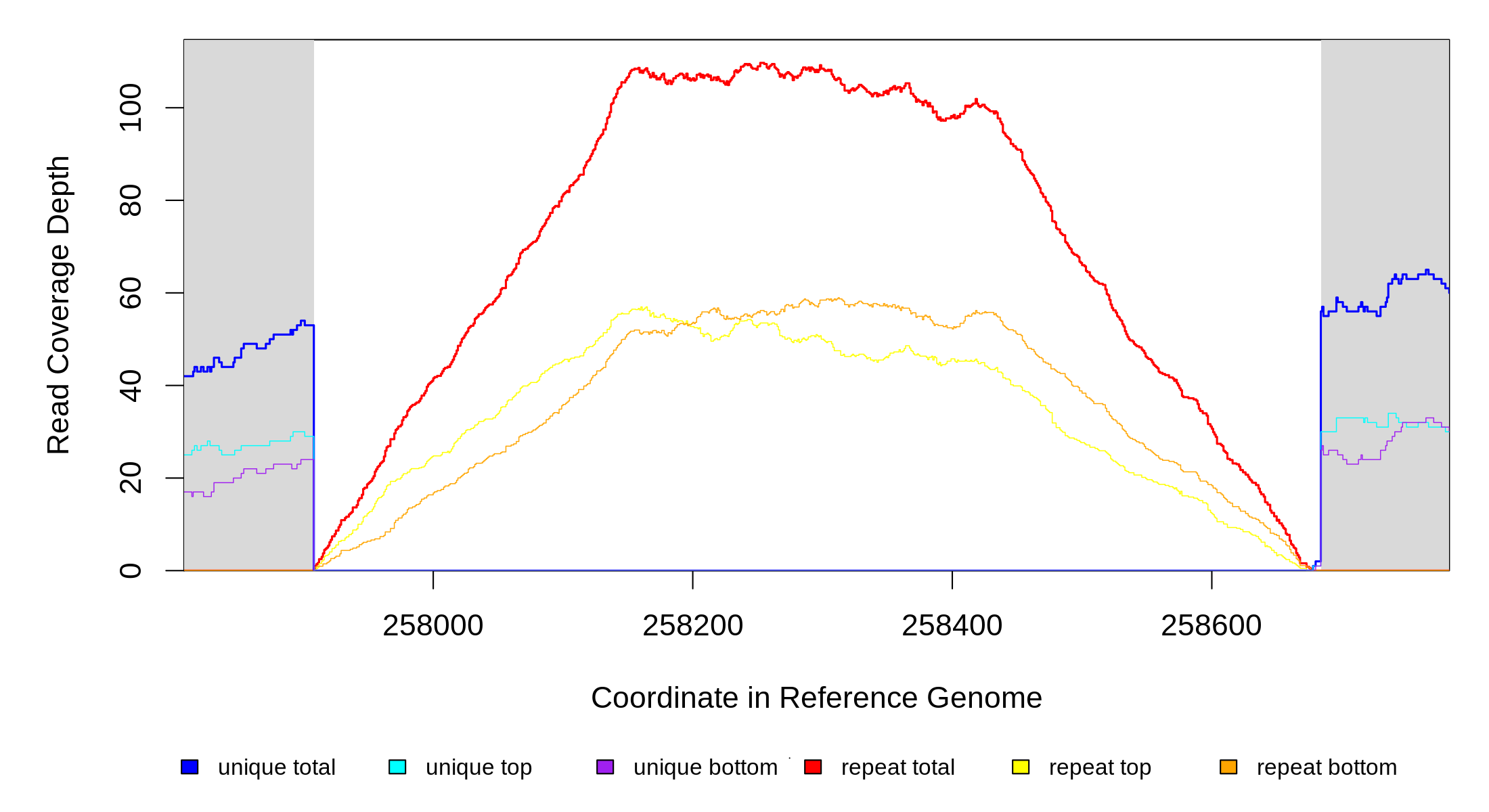 | seq id | start | end | size | ←reads | reads→ | gene | description | |||