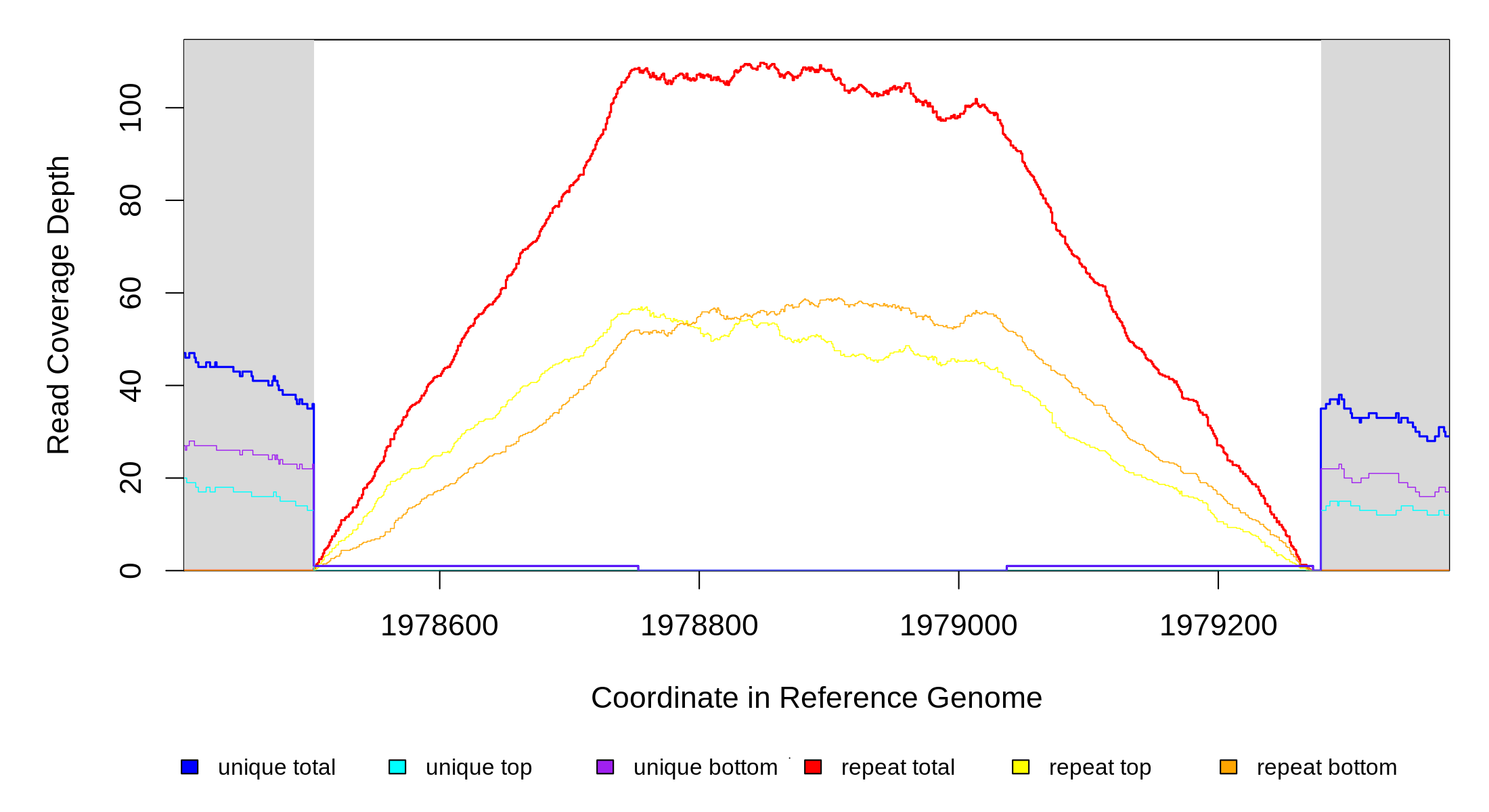 | seq id | start | end | size | ←reads | reads→ | gene | description | |||