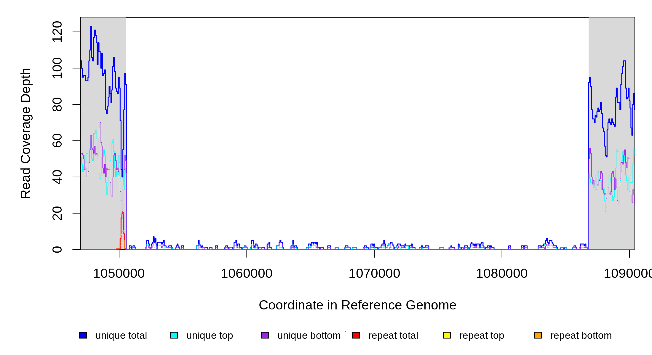 | seq id | start | end | size | ←reads | reads→ | gene | description | |||