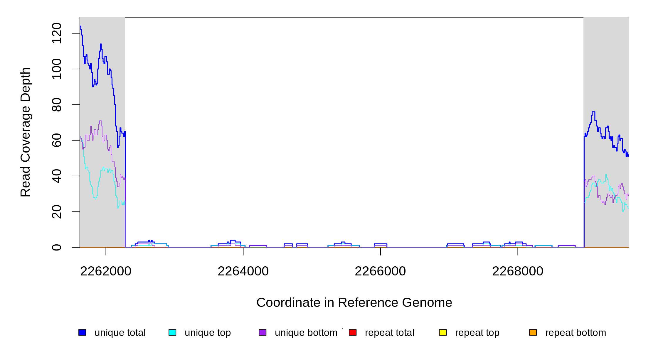 | seq id | start | end | size | ←reads | reads→ | gene | description | |||