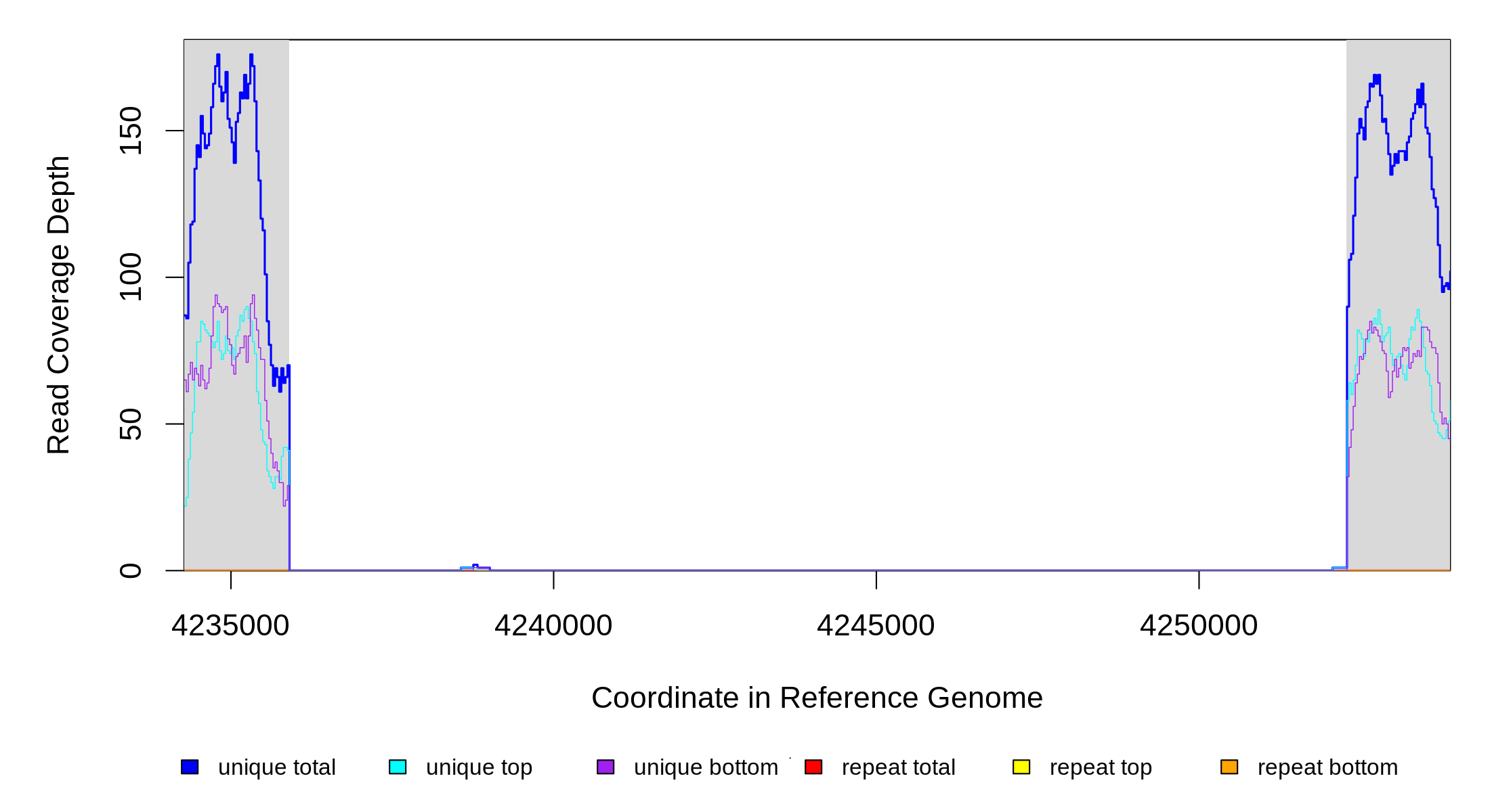 | seq id | start | end | size | ←reads | reads→ | gene | description | |||