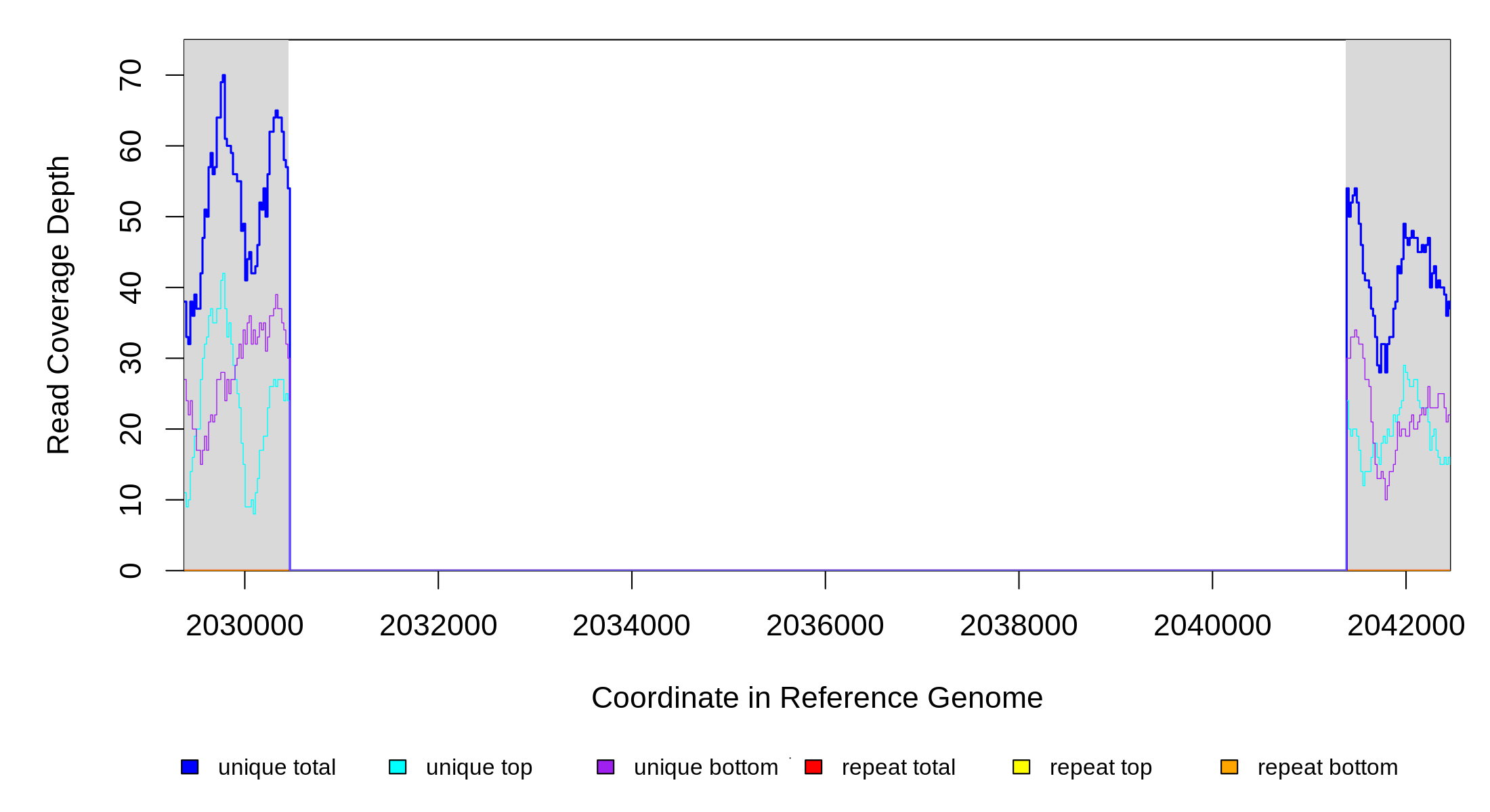| seq id | start | end | size | ←reads | reads→ | gene | description | |||