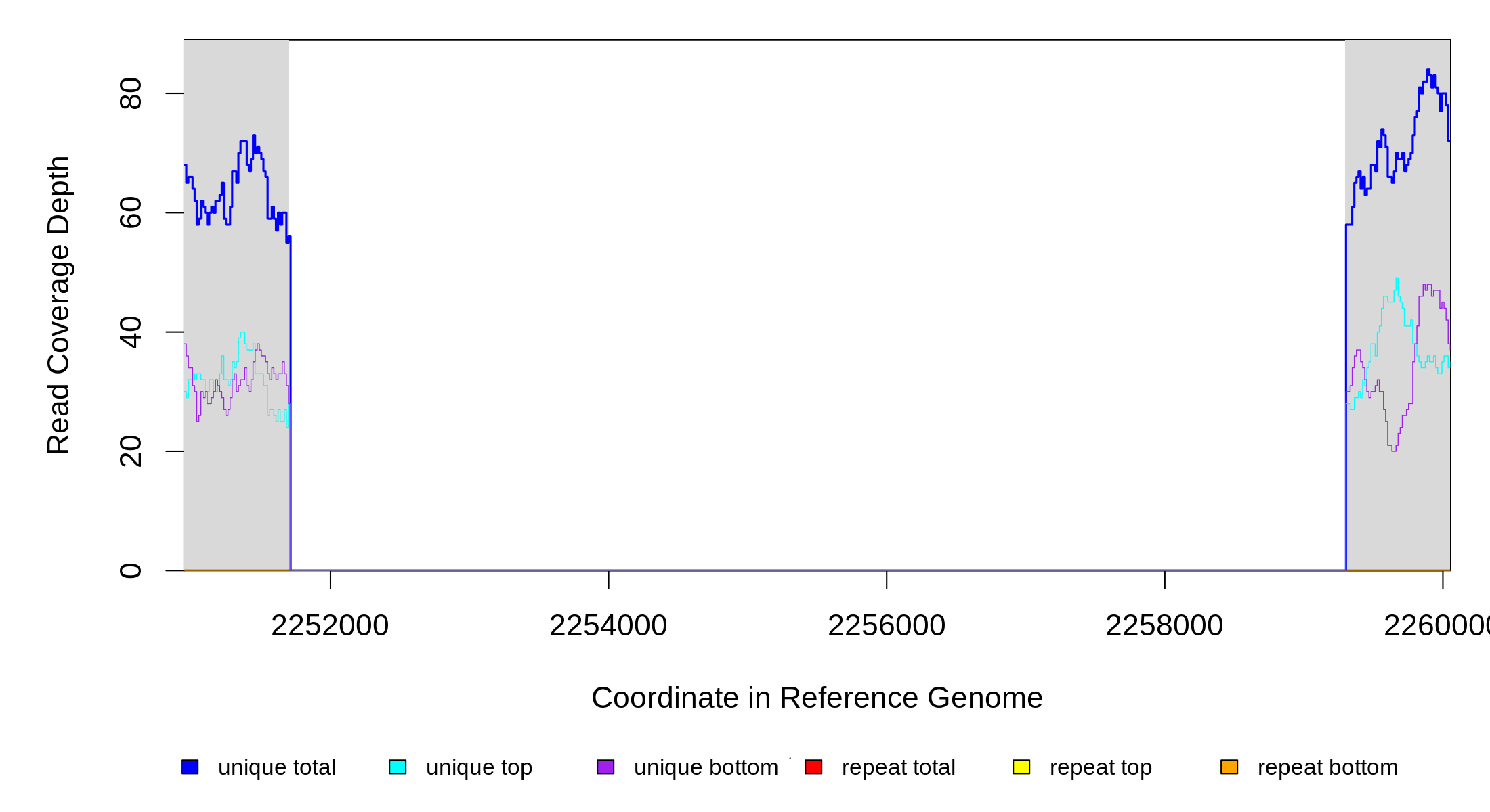 | seq id | start | end | size | ←reads | reads→ | gene | description | |||