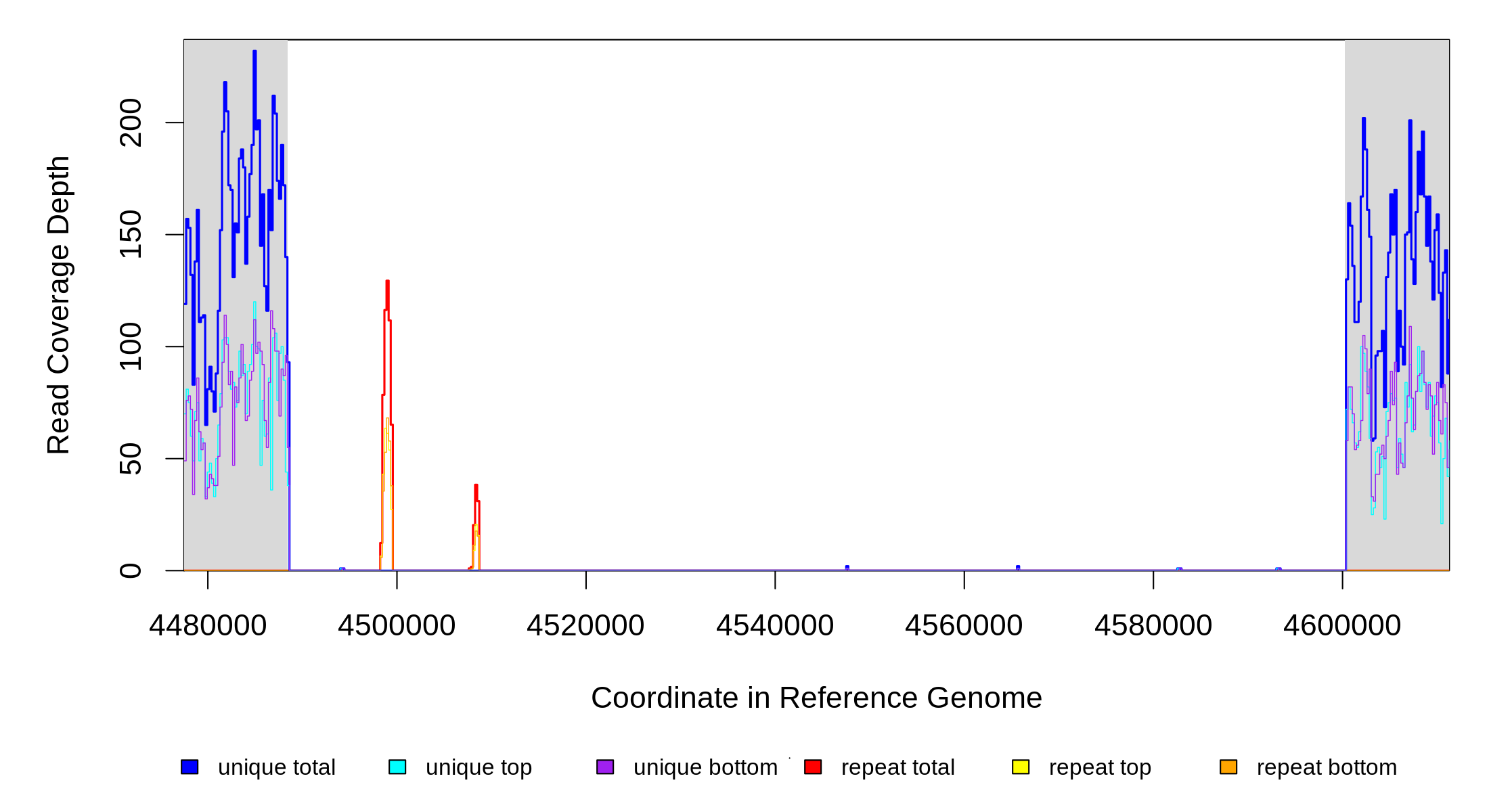 seq id start end size ←reads reads→ gene description
