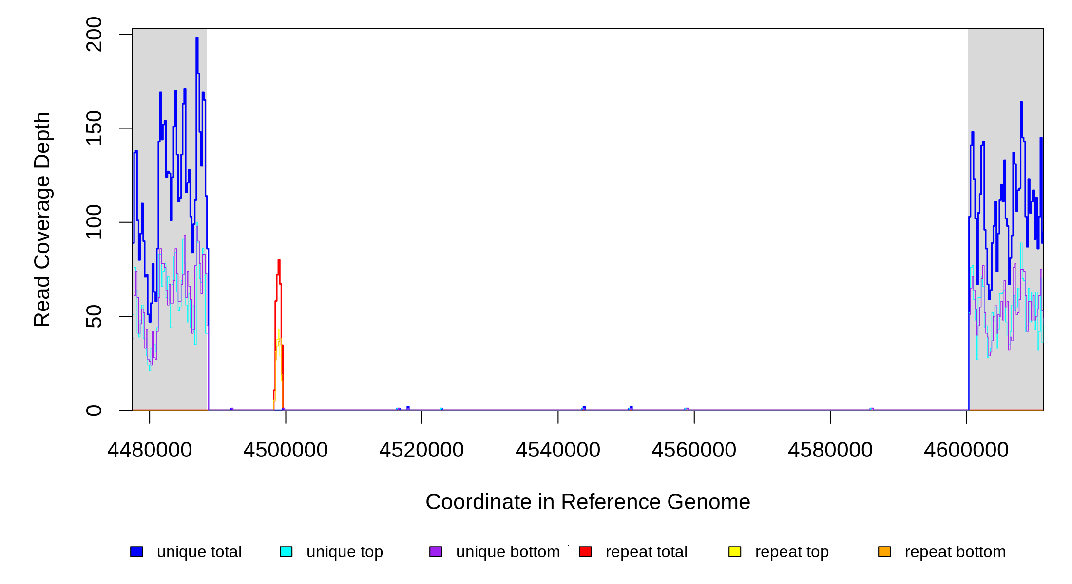 seq id start end size ←reads reads→ gene description