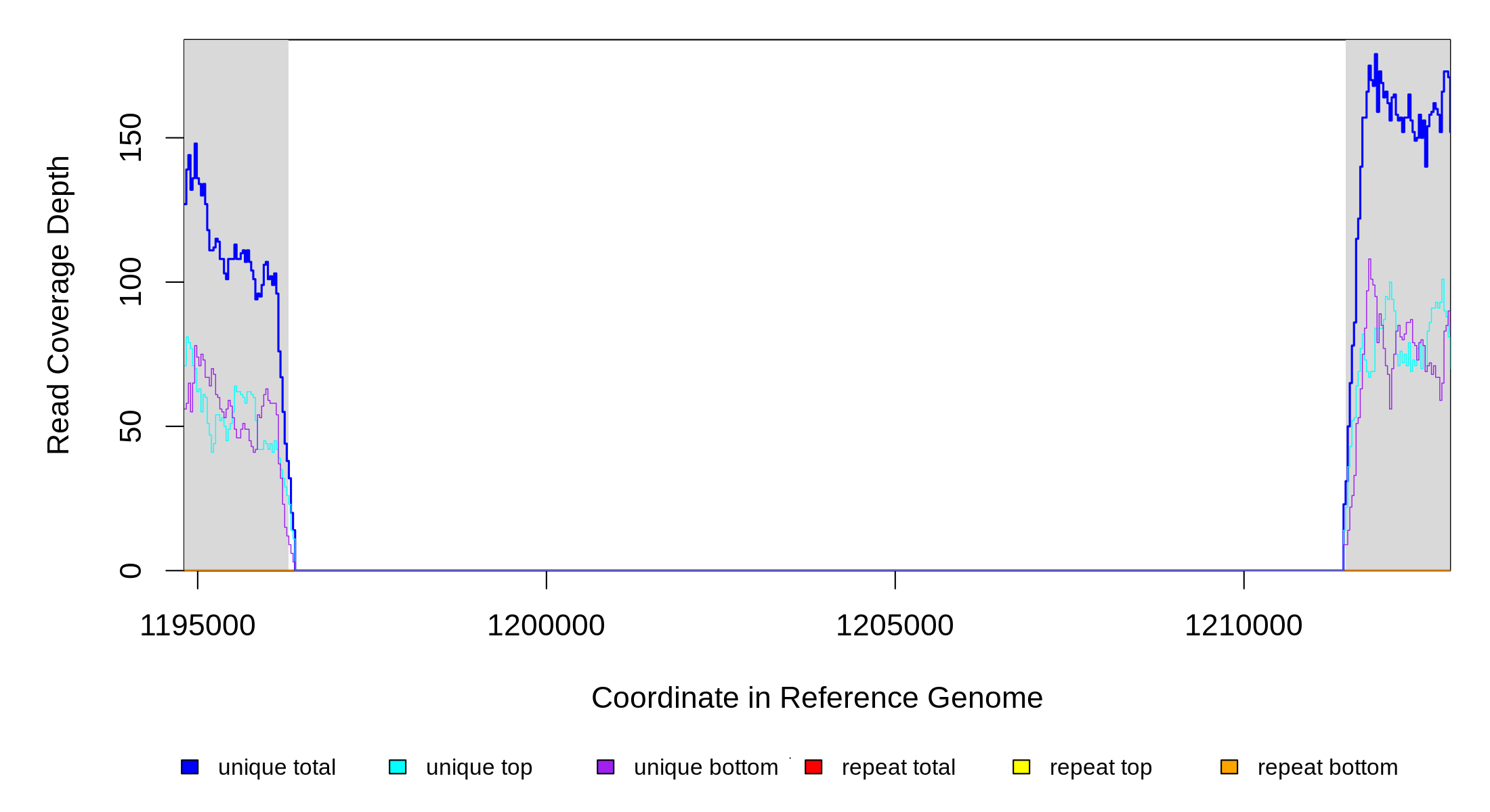 | seq id | start | end | size | ←reads | reads→ | gene | description | |||