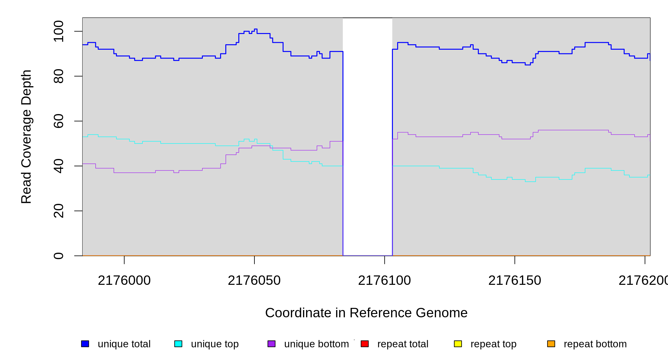 | seq id | start | end | size | ←reads | reads→ | gene | description | |||