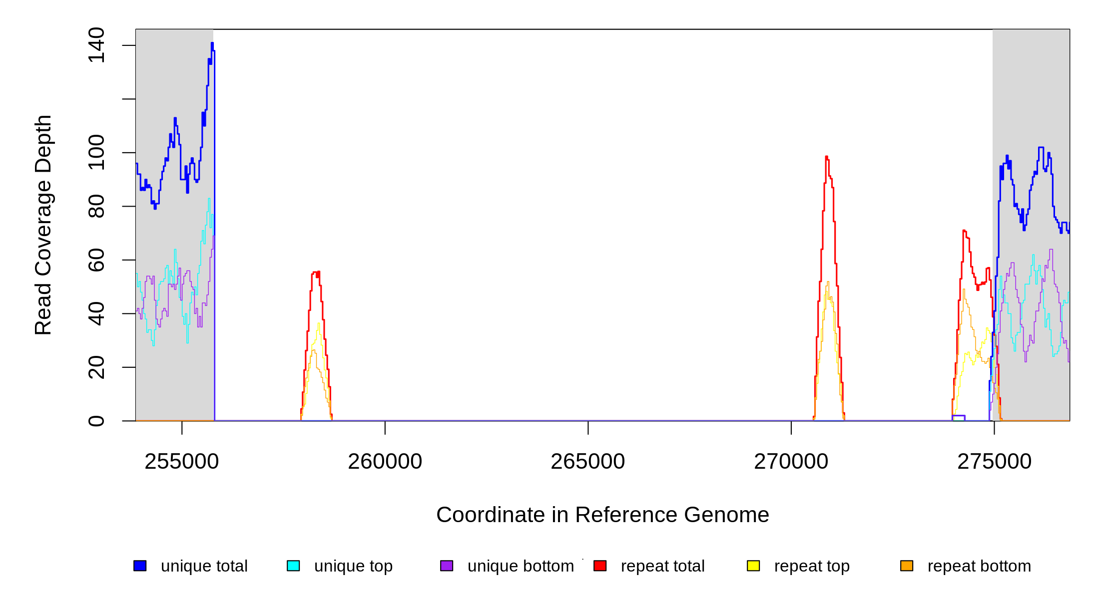 | seq id | start | end | size | ←reads | reads→ | gene | description | |||
