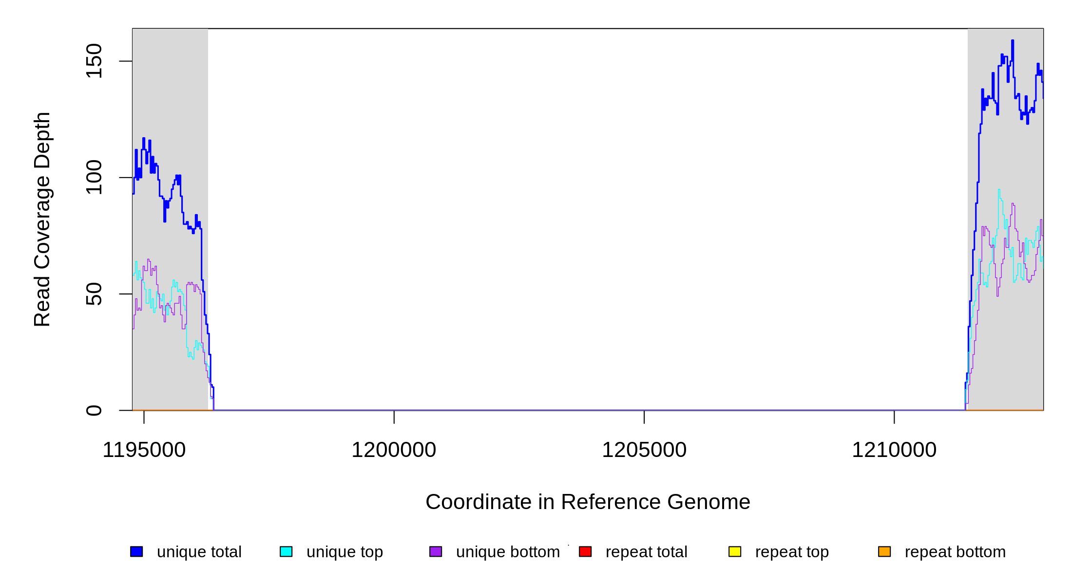 | seq id | start | end | size | ←reads | reads→ | gene | description | |||