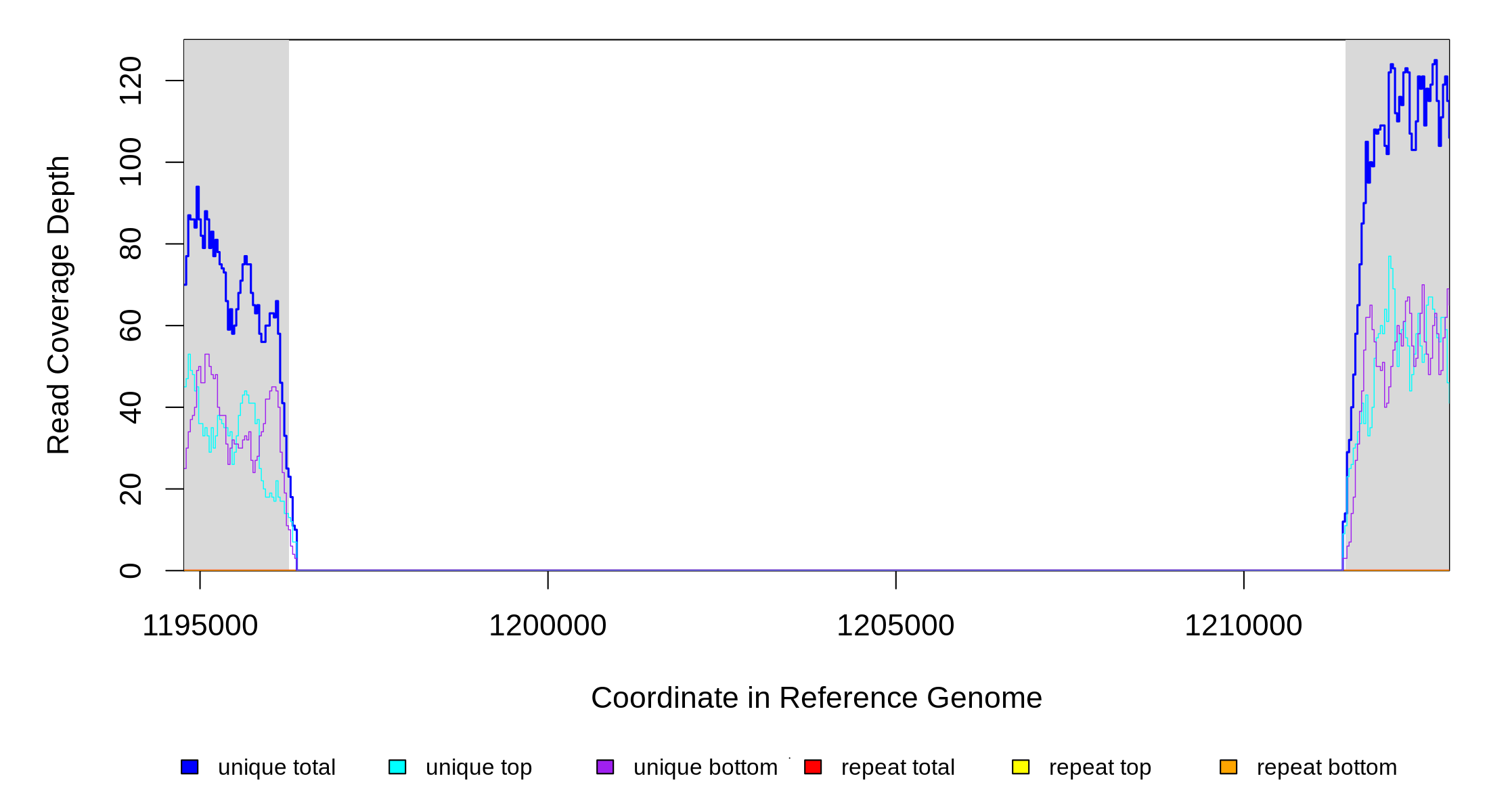 | seq id | start | end | size | ←reads | reads→ | gene | description | |||