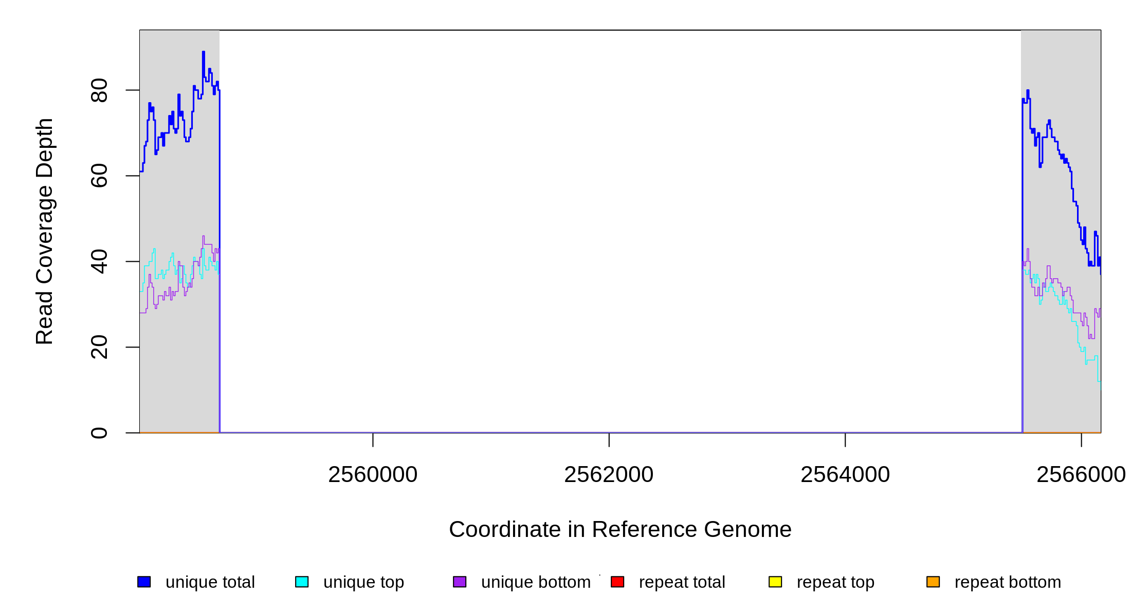| seq id | start | end | size | ←reads | reads→ | gene | description | |||