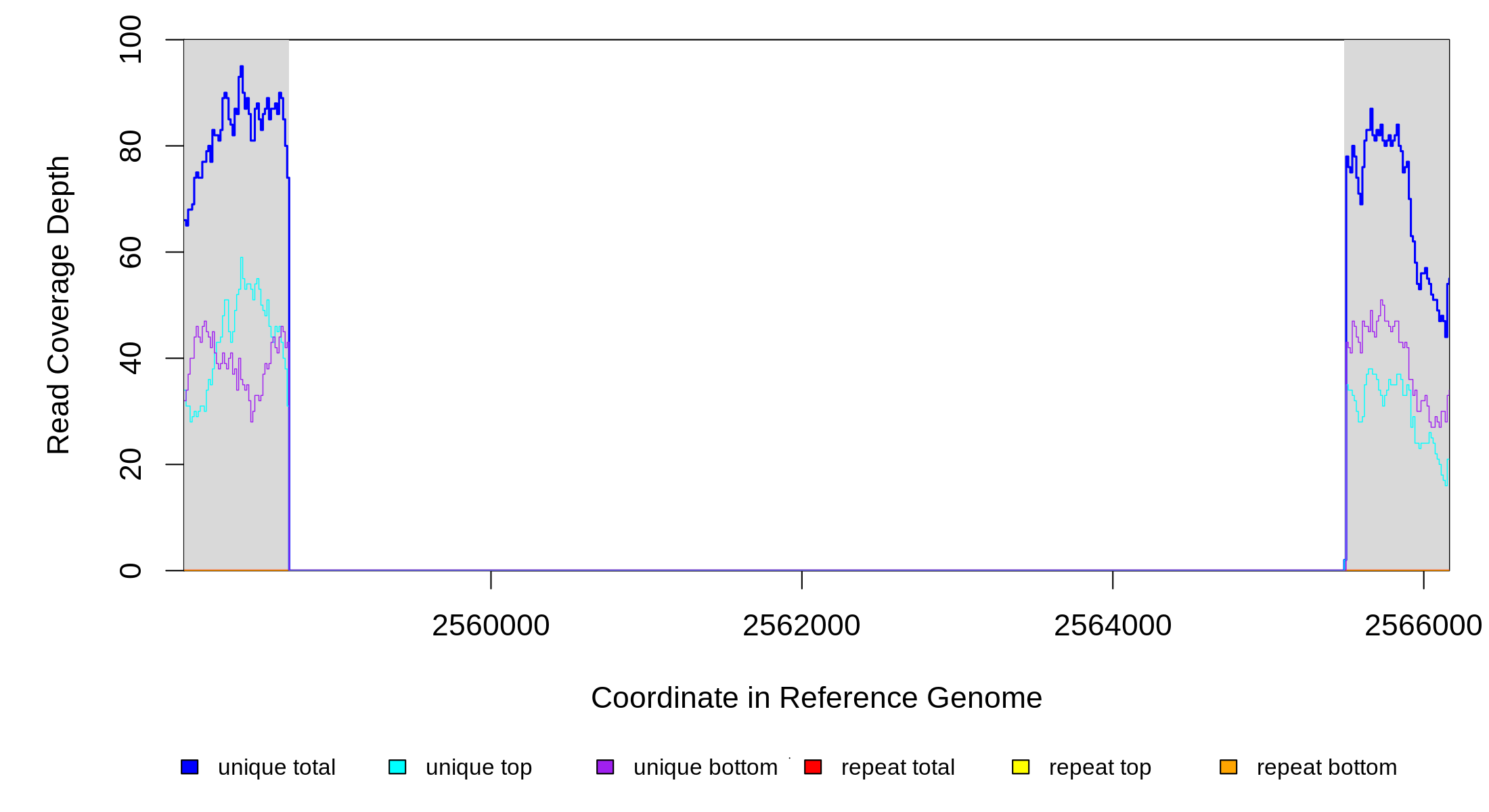 | seq id | start | end | size | ←reads | reads→ | gene | description | |||