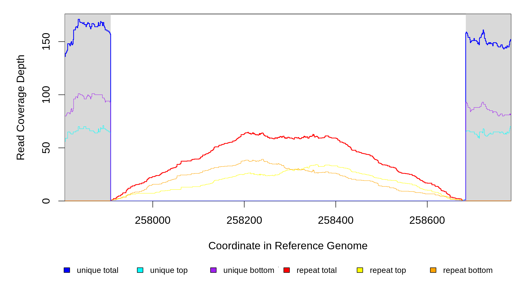 | seq id | start | end | size | ←reads | reads→ | gene | description | |||