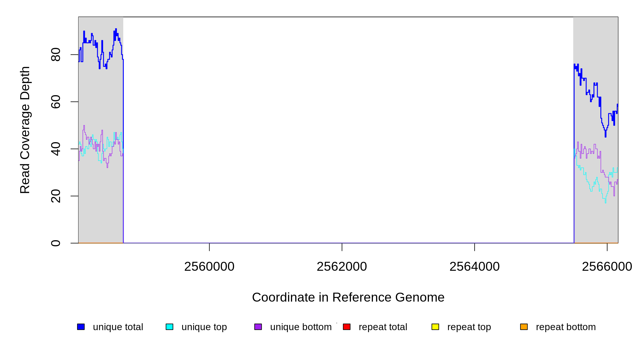 | seq id | start | end | size | ←reads | reads→ | gene | description | |||
