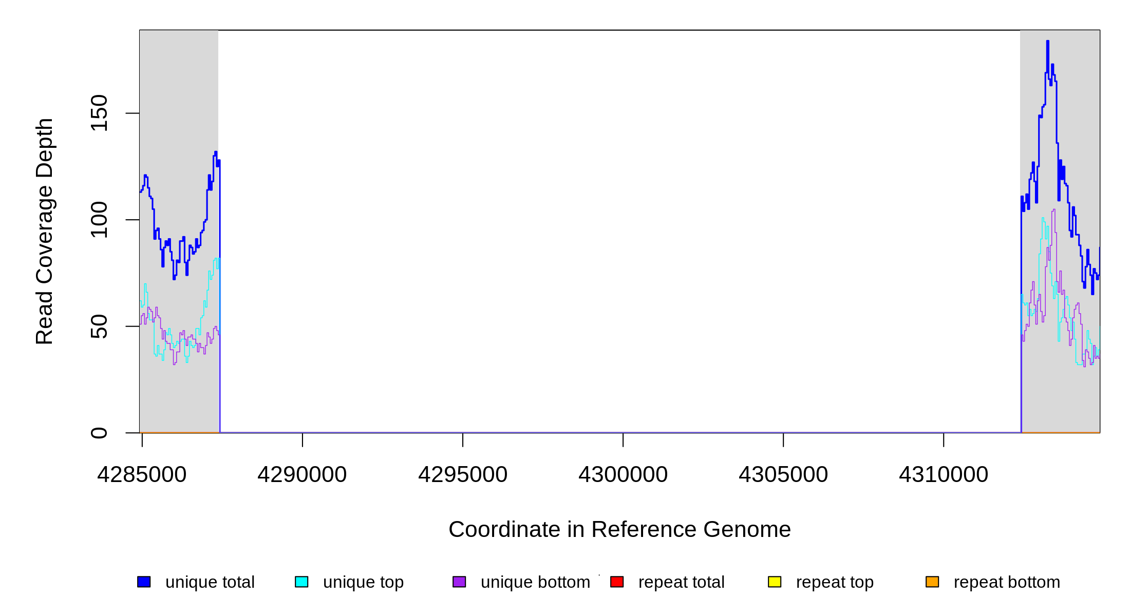 | seq id | start | end | size | ←reads | reads→ | gene | description | |||