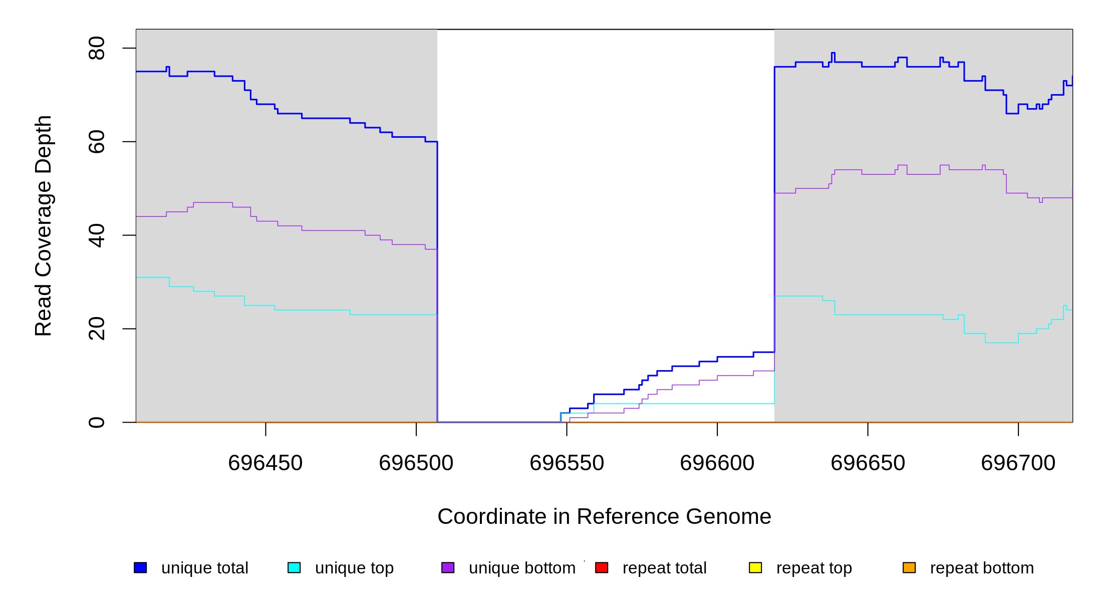 | seq id | start | end | size | ←reads | reads→ | gene | description | |||