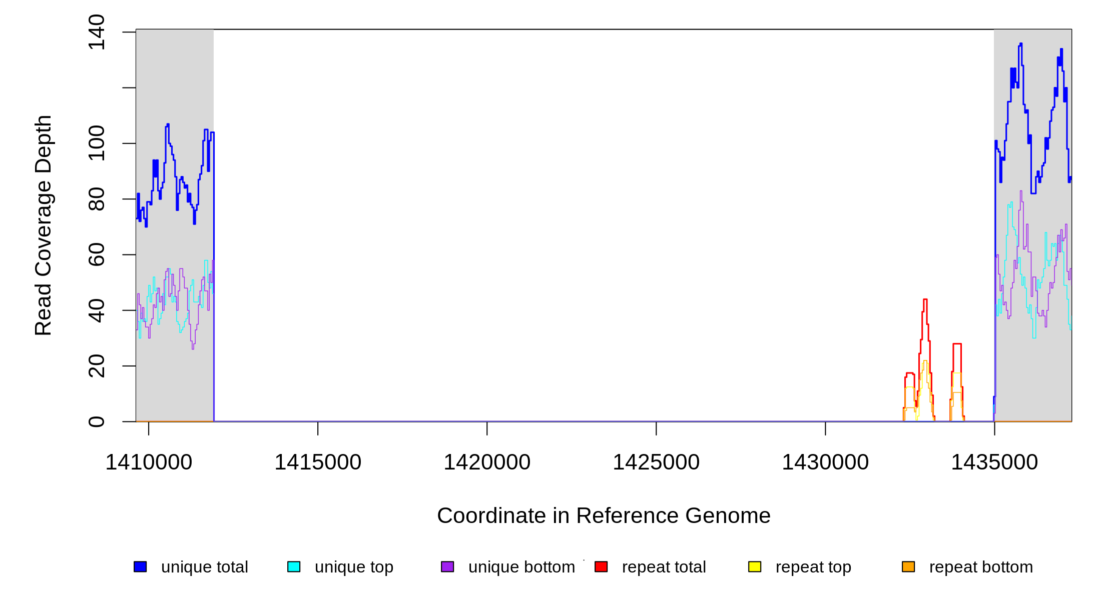 | seq id | start | end | size | ←reads | reads→ | gene | description | |||