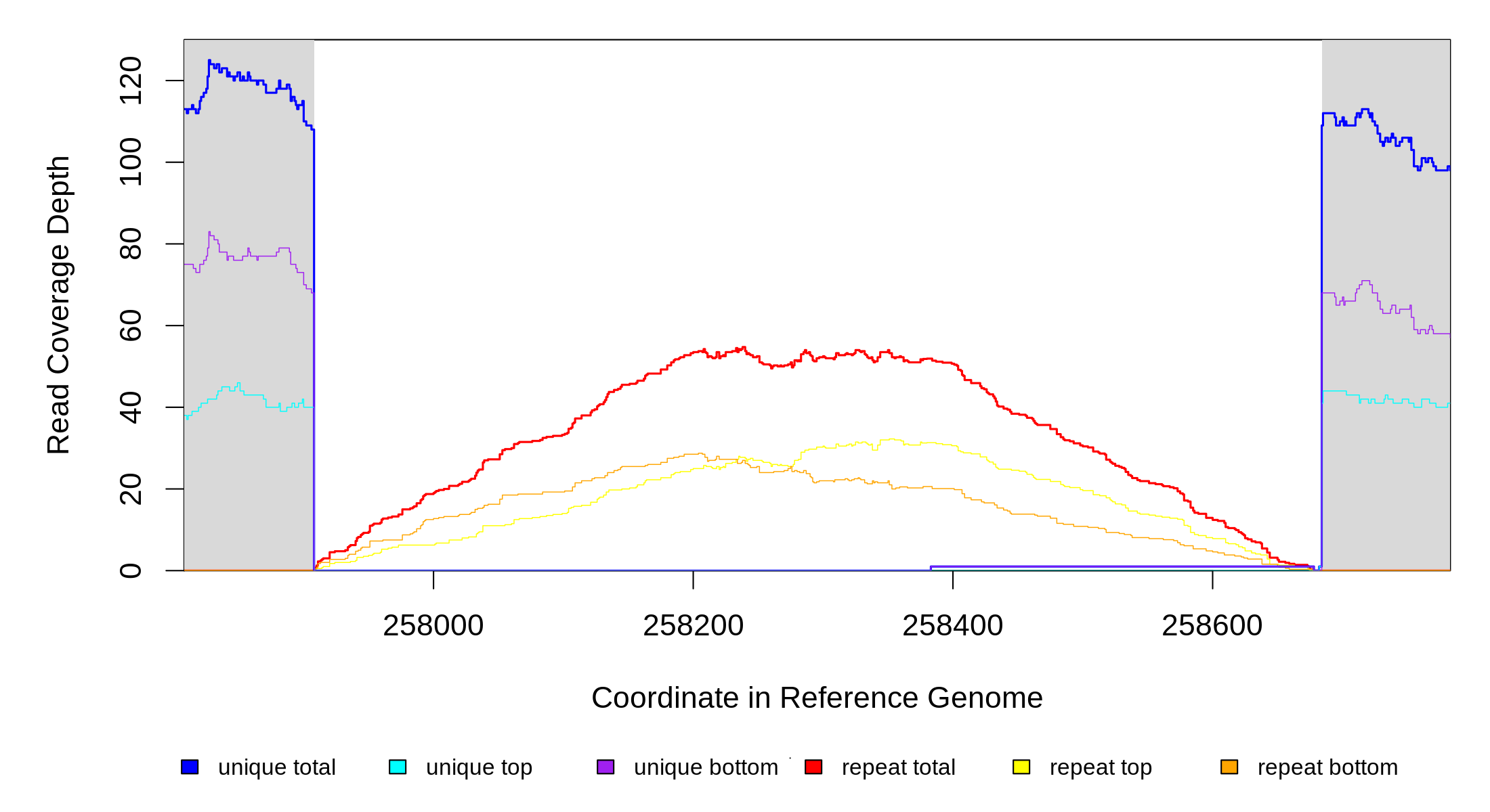 | seq id | start | end | size | ←reads | reads→ | gene | description | |||