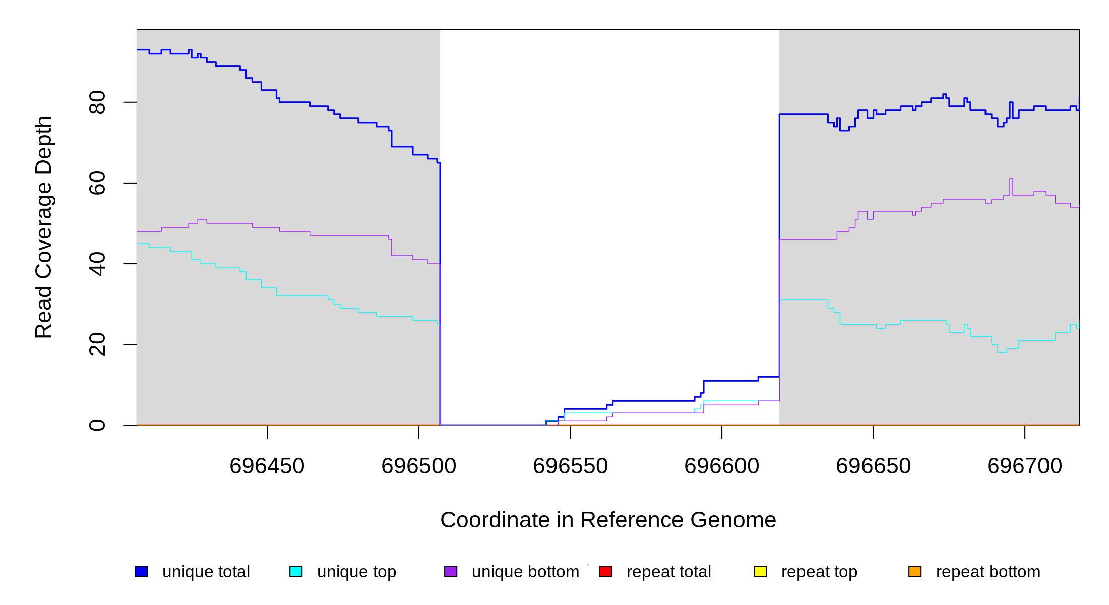 | seq id | start | end | size | ←reads | reads→ | gene | description | |||