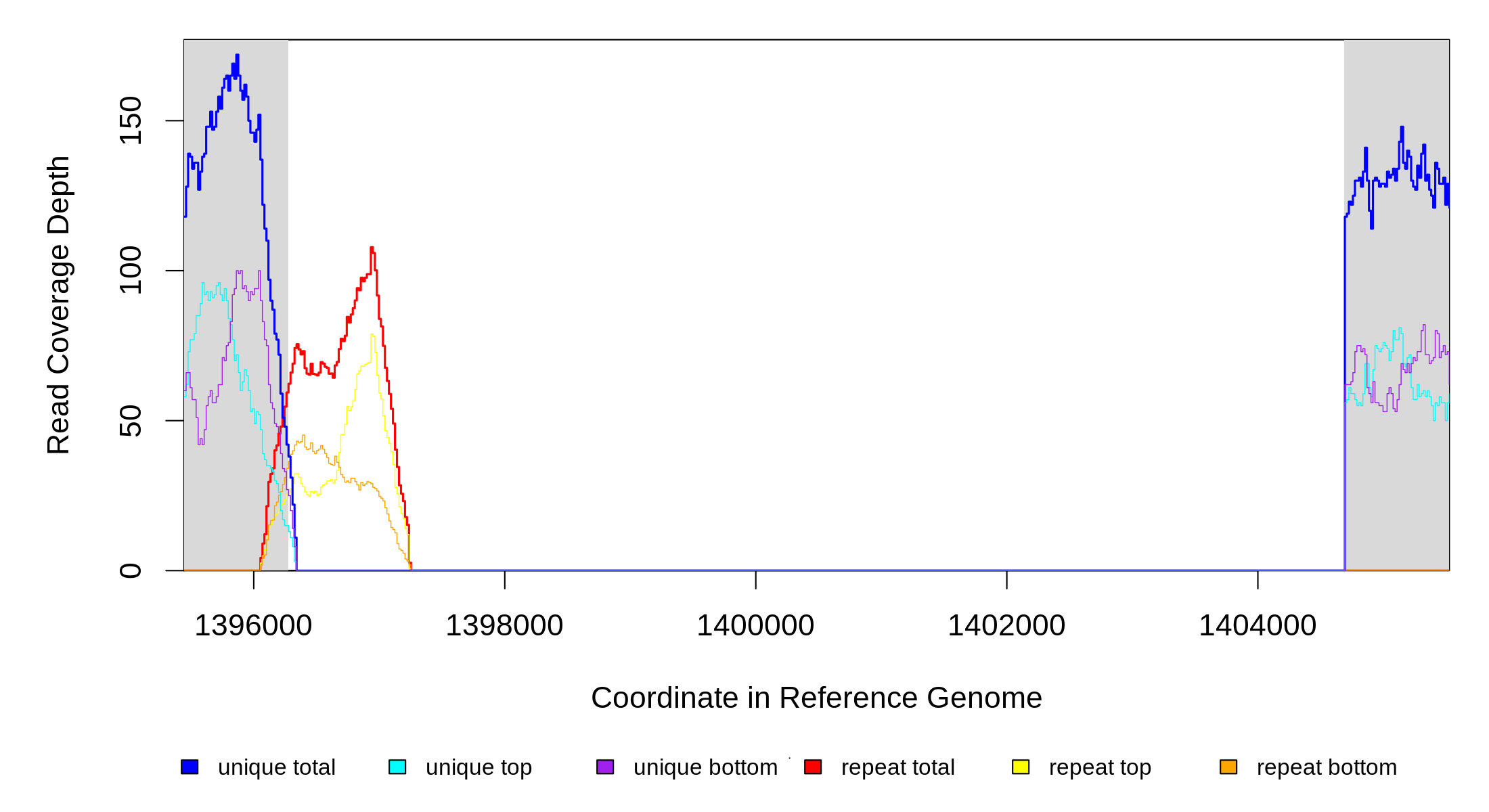 | seq id | start | end | size | ←reads | reads→ | gene | description | |||