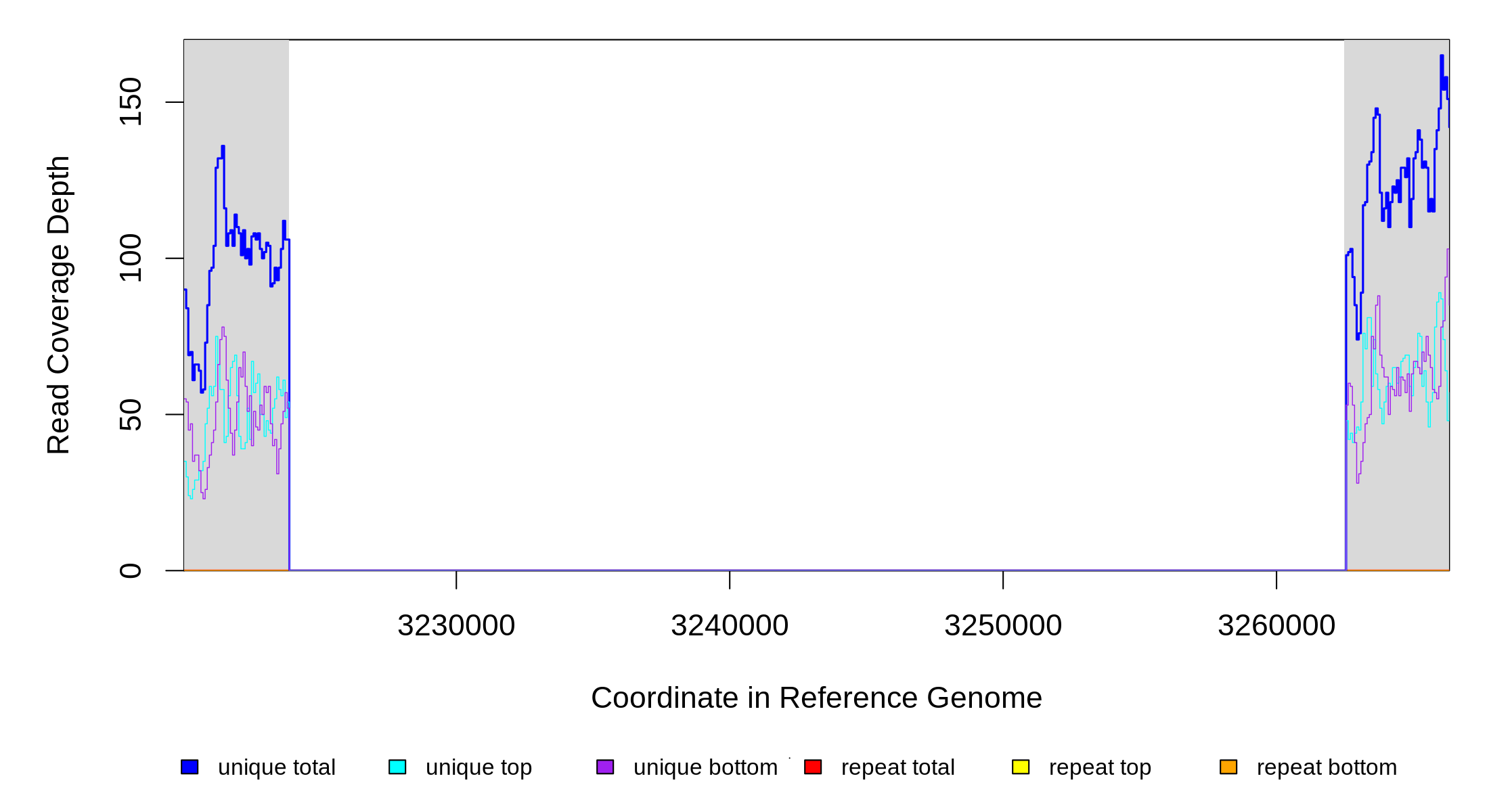 | seq id | start | end | size | ←reads | reads→ | gene | description | |||